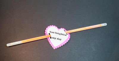I also wanted to share the super simple Valentines my boys are doing this year. Well... I guess I'm doing them. I printed the "You brighten my day" out a bunch of times, punched it with a heart punch, punched the scalloped heart out of pink. Then I made slot holes in it and slid a glow stick inside. The glow sticks are 15 for a dollar in the dollar spot of Target. Get it? You "BRIGHTEN" my day and it has a glow stick? I love Valentines Day, if only for the puns!